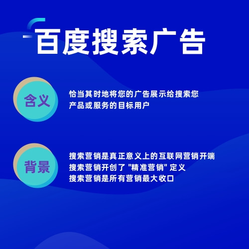 百度搜索广告,是在搜索结果显著的位置优先展示您的推广信息,客户主动搜索关键词时,能立即看到您的产品及服务,主动寻求合作。